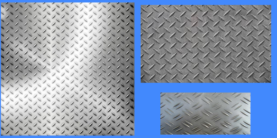 Diamond plate, also known as checker plate, tread plate and Durbar floor plate, is a type of metal stock with a regular pattern of raised diamonds or lines on one side, with the reverse side being featureless.